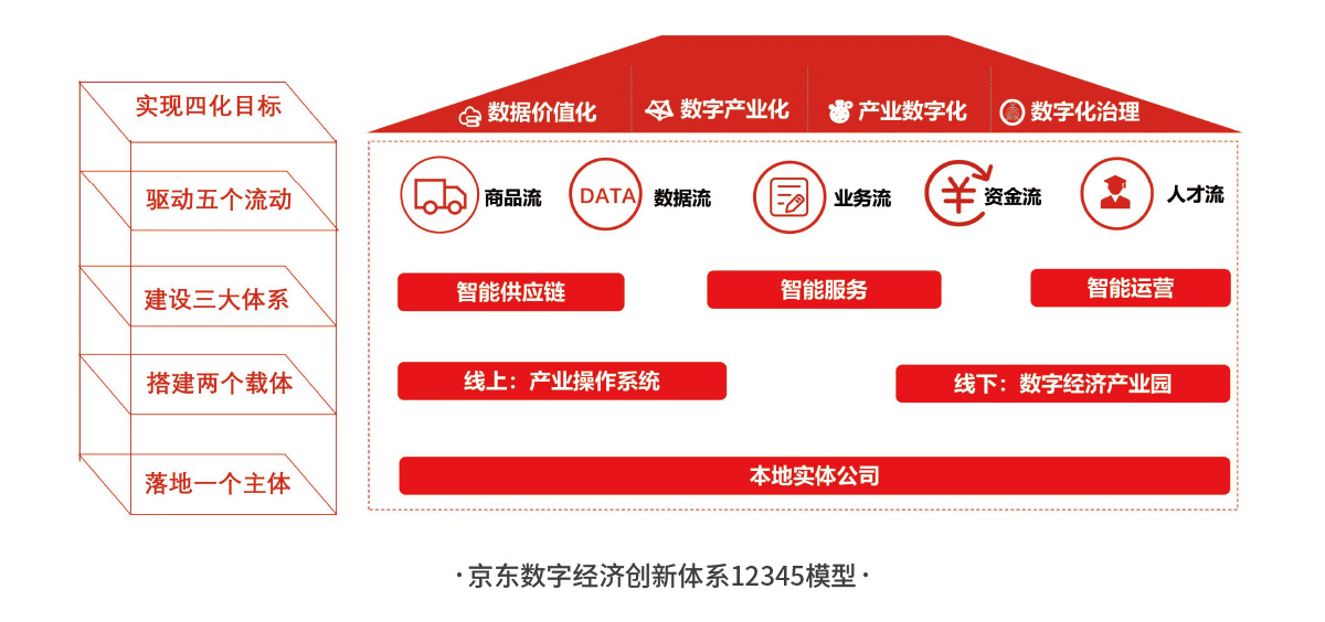 2021年12月,国务院颁布《“十四五”数字经济发展规划》,提出到2025年,数字经济迈向全面扩展期,数字经济核心产业增加值占GDP比重达到10%。京东科技集团目前在全国近60所城市布局了京东智能城市数字经济产业园,通过搭建数字经济创新体系,助力城市及产业数智化转型。
